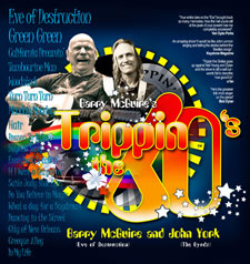 John York, best known for playing bass with Sir Douglas Quintet, and the Byrds from 68-69 accompanies McGuire onstage. The show is a trip down memory lane. Were just walking through those years of all those wonderful songs, and all my friends I worked with and performed with and partied with.