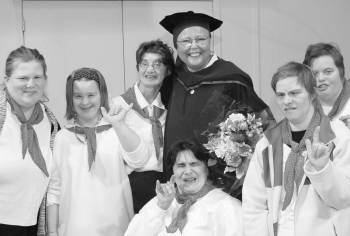 | Joy Gregory, with supporters at a special convocation in February where she received her doctorate. |